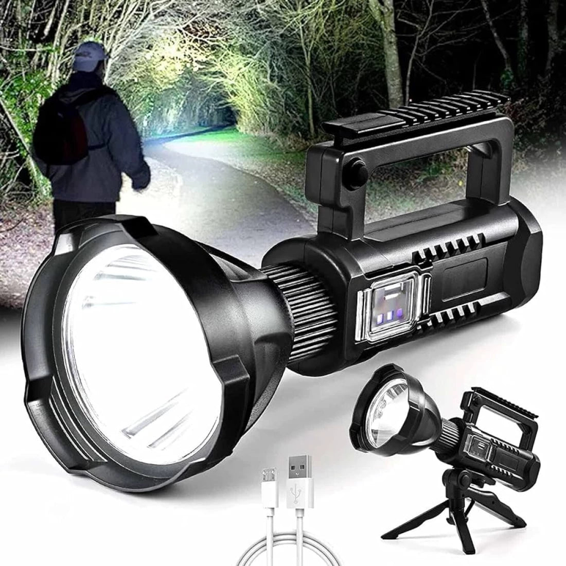 Acest model de lanterna este special conceput pentru a actiona la distante foarte mari, raza de lumina fiind grupata perfect fara pierderi laterale, cu o intensitate de exceptie pentru o vizibilitate foarte buna pana la 1000m. Lanterna are indicator pentru nivelul de incarcare al acumulatorului, 3 LED-uri albastre, si un port usb pentru a putea fi utilizata pe post de incarcator pentru telefon sau tableta.