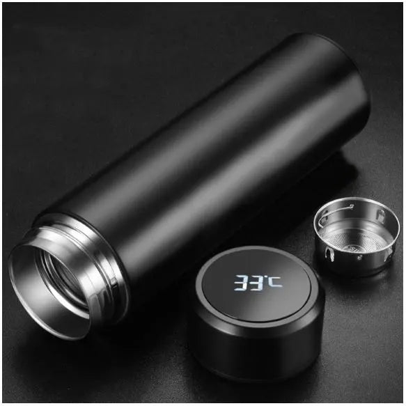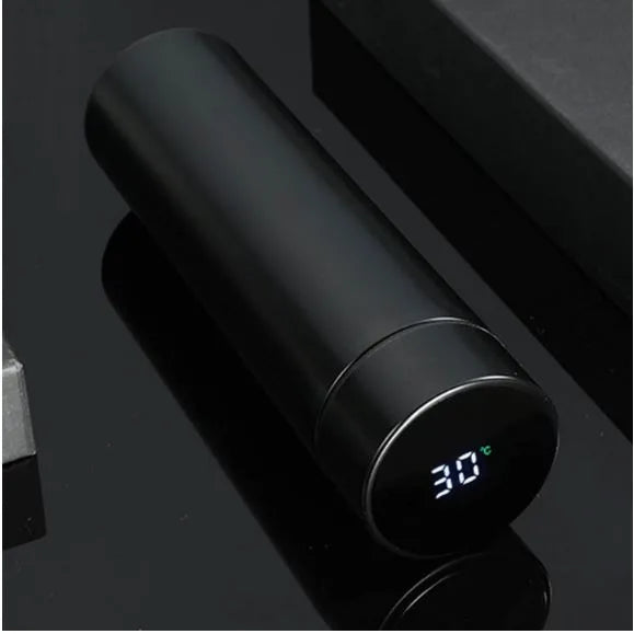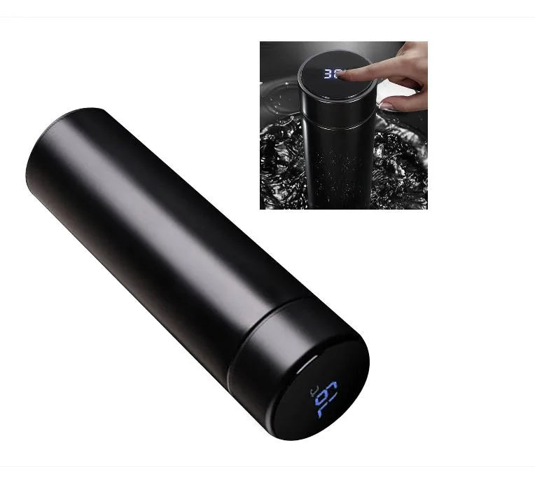 Termos, cu afisaj Led cu ecran tactil, indicator de temperatura, otel inoxidabil, sticla inteligenta, pentru cald sau rece, 500ml, Negru